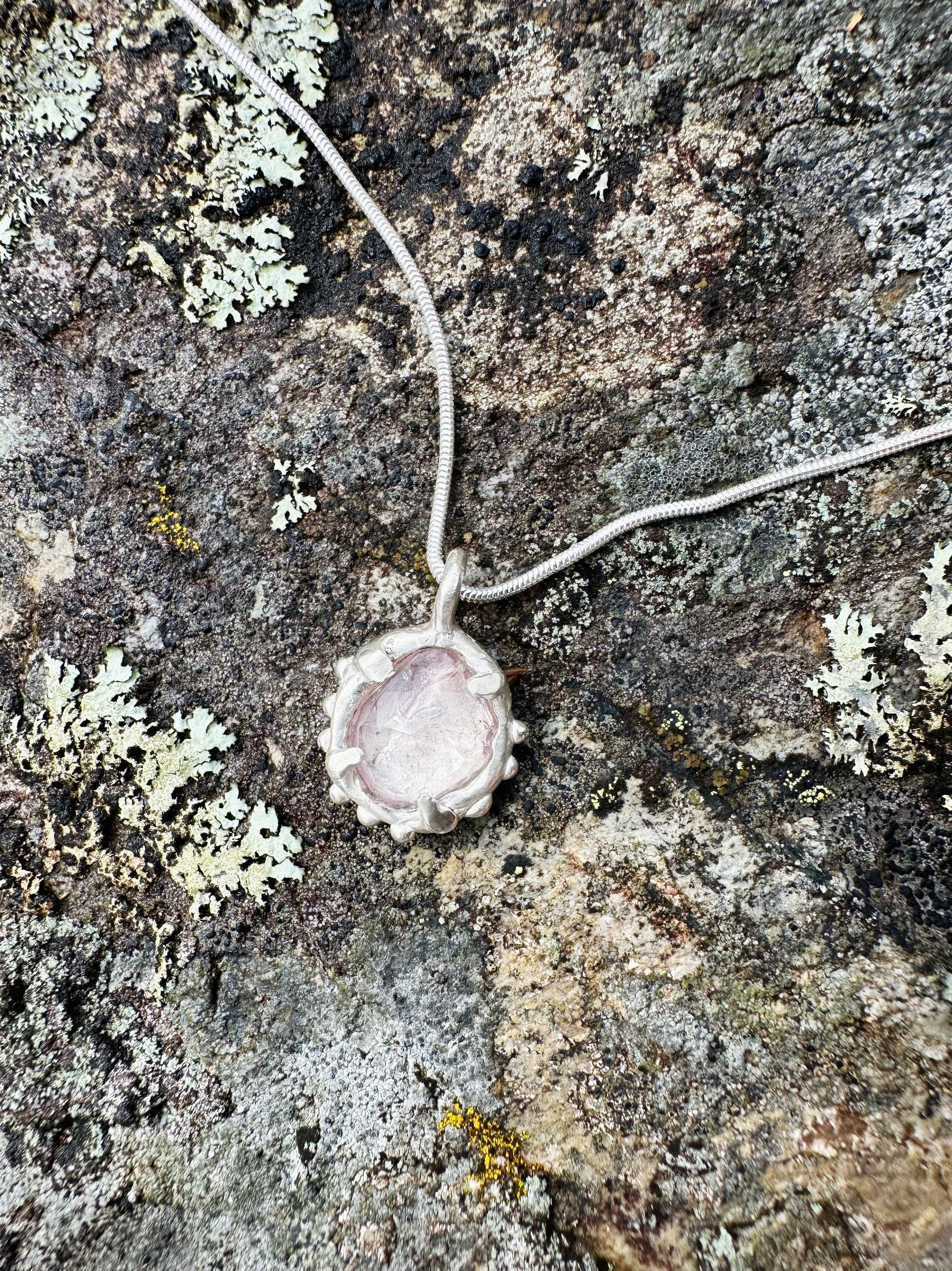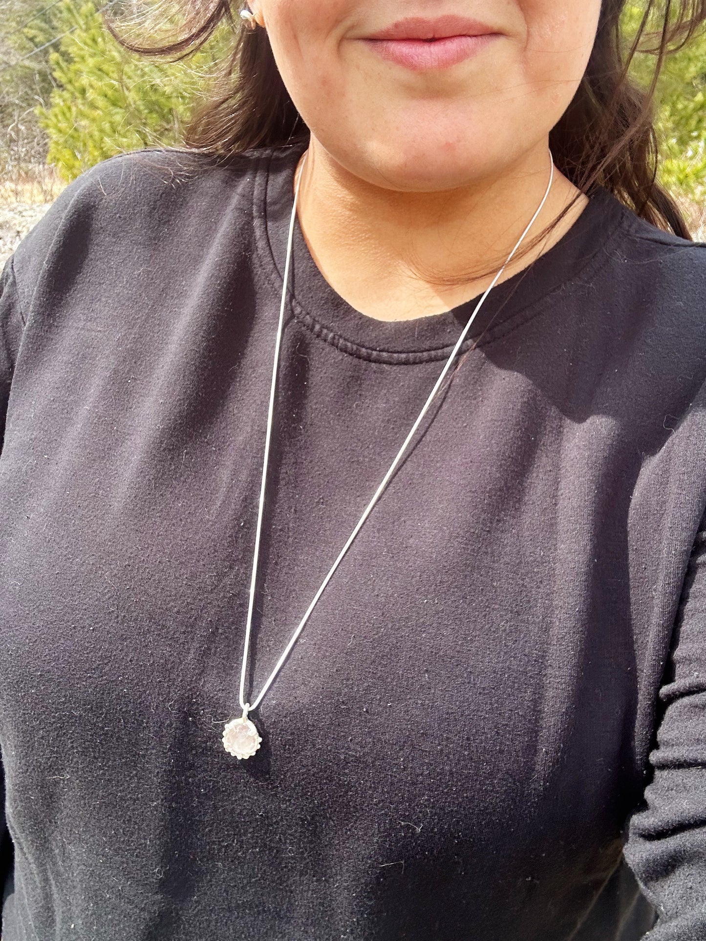 Necklace on a 30 inch snake chain with a lobster clasp.