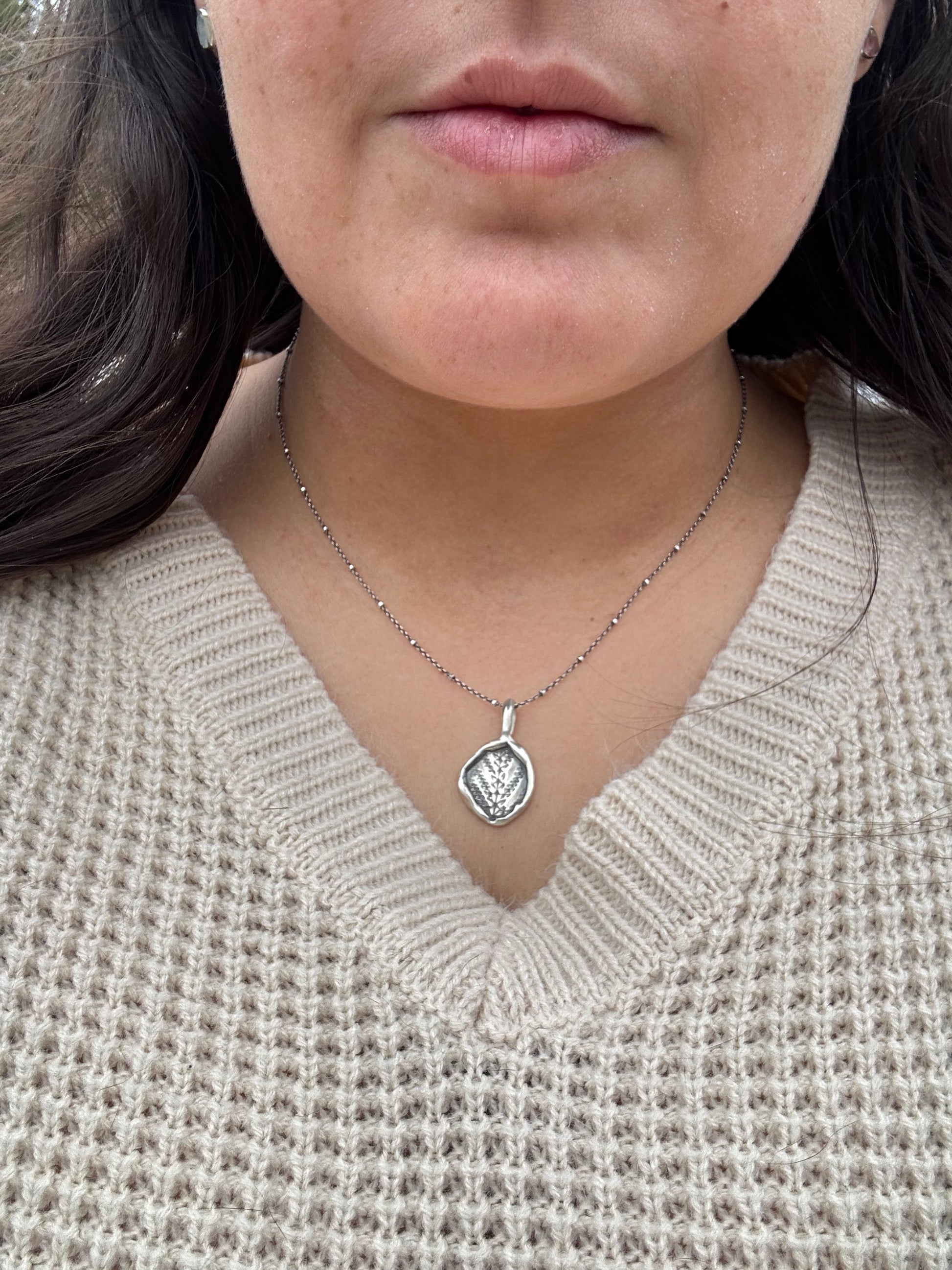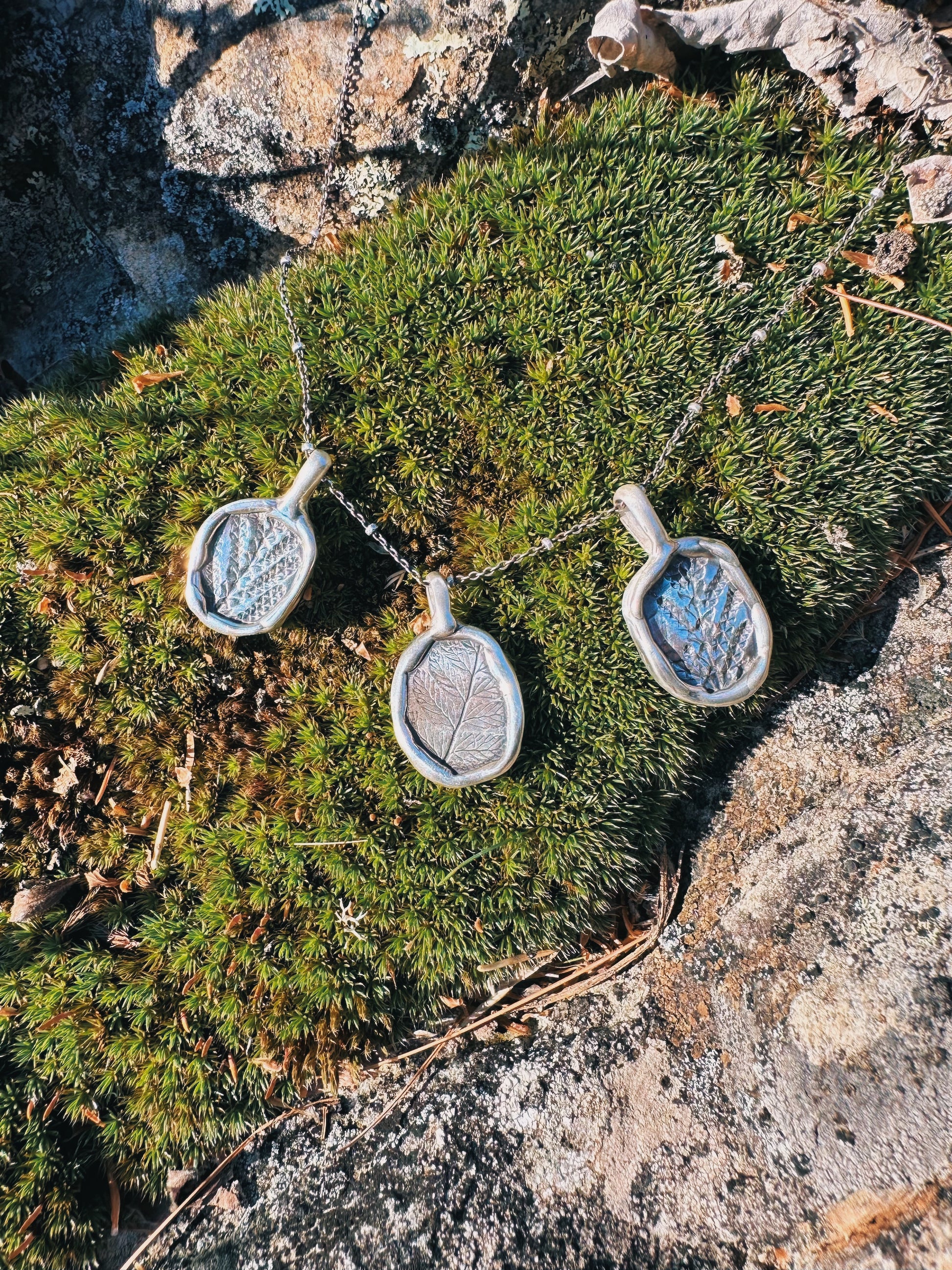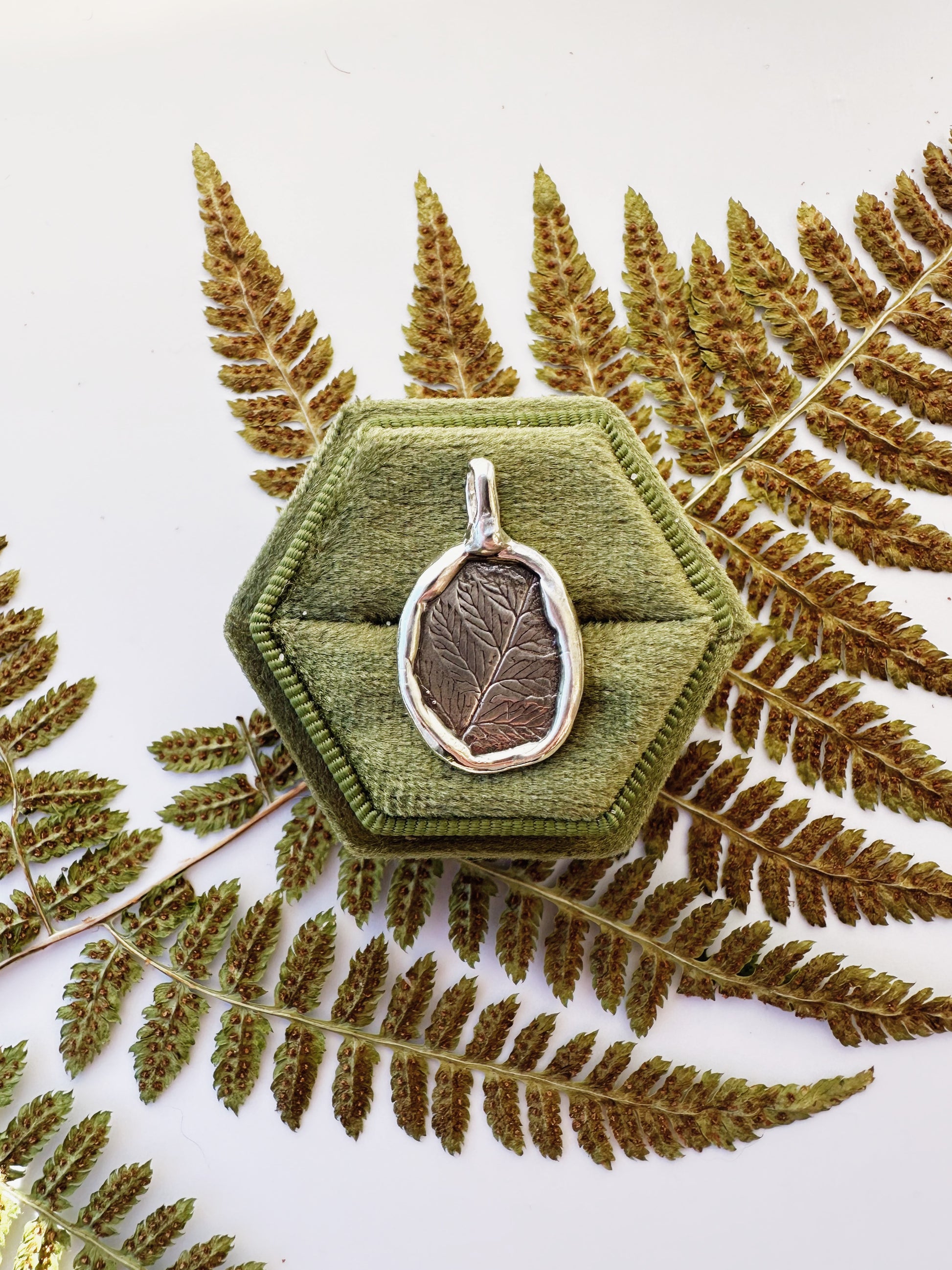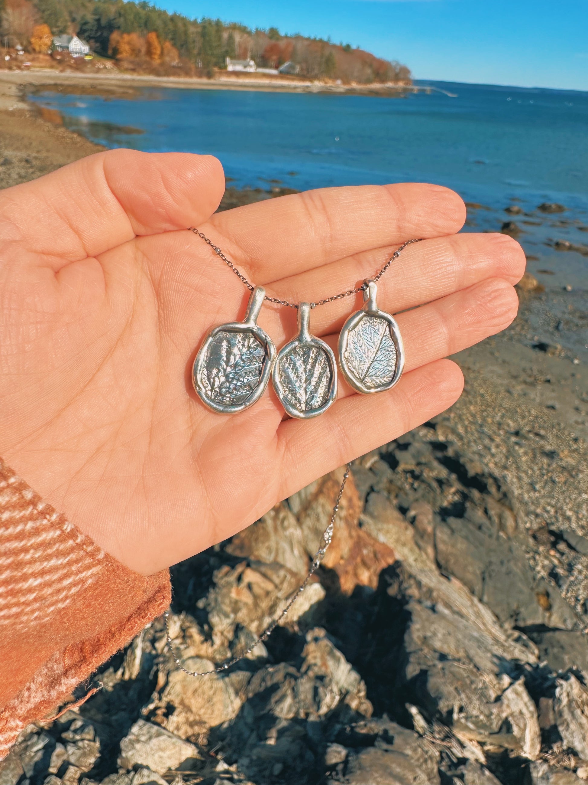 I’m obsessed with the charm necklace trend coming back so of course I had to make some pendant charms. These pendants have leaf impressions made with ferns foraged from my favorite place in the world - Maine.