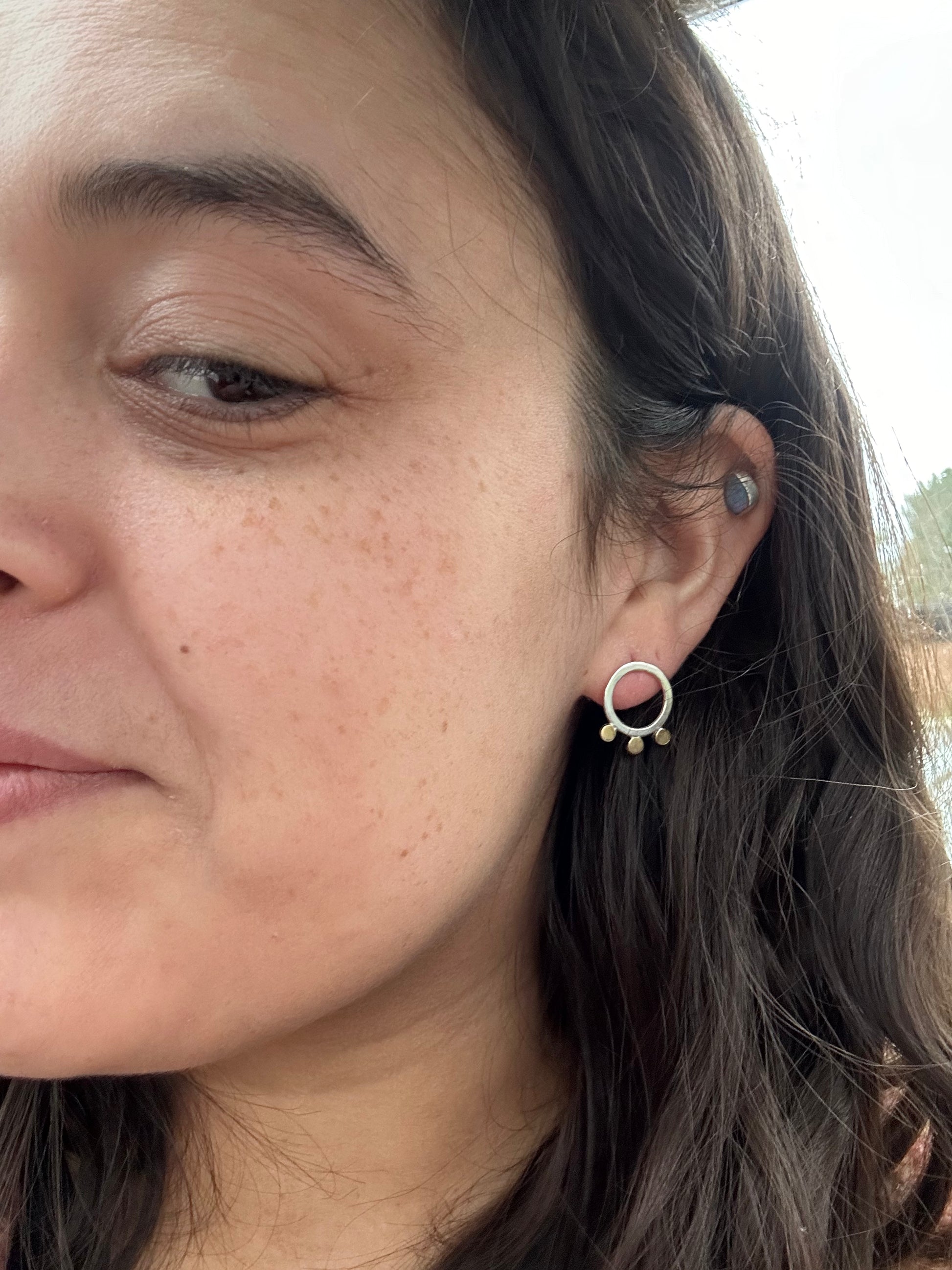 These simple silver studs have become my go-to, everyday earrings. The little brass accents remind me of fireflies & stars. Lightweight and versatile, with a touch of whimsy, the mini version of the original sky dancer studs.