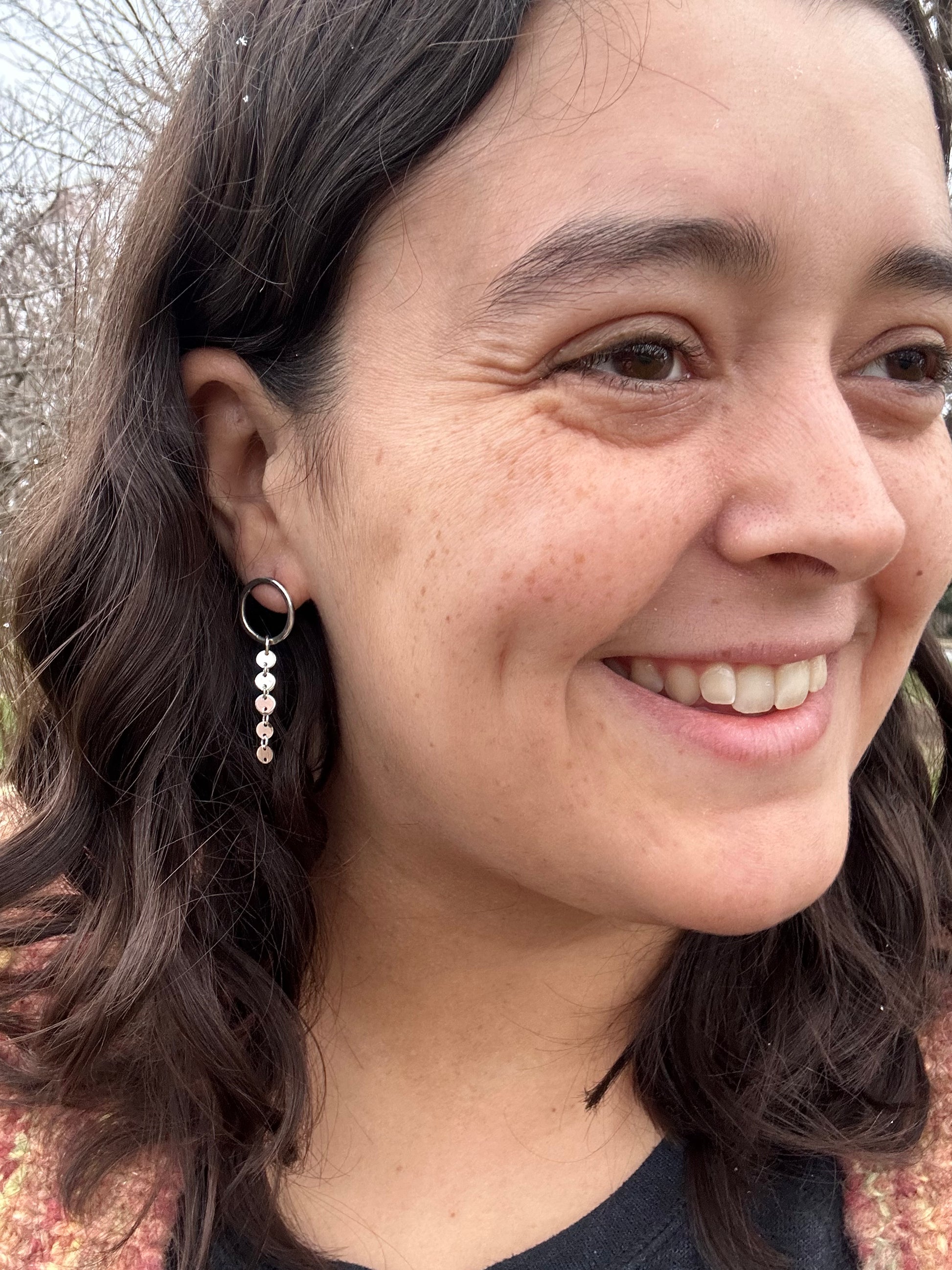 These simple silver hammered circle studs with dangle disco chain are so fun! Simple, can wear them every day but also on special occasions with the fun movement from the chain